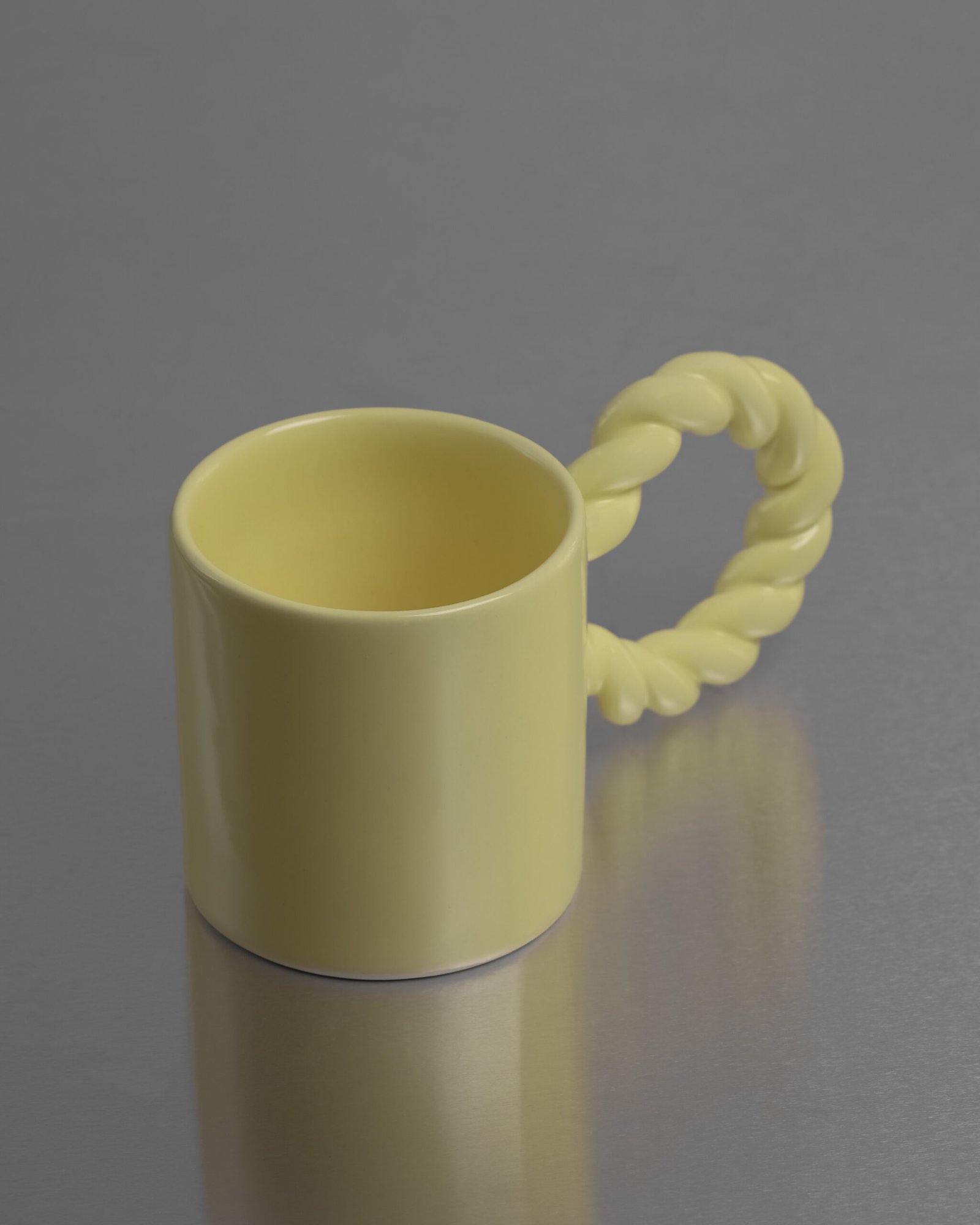 Šie puodeliai jungia priešybes – tvirtumą ir švelnumą, žaismą ir funkciją. Rankų darbo keramika su glotnia, susukta virvės formos rankenėle – ne tik patogus laikyti, bet ir vizualinė patirtis, leidžianti pajusti formos dinamiką. Kiekvienas puodelis šiek tiek skiriasi – nes kiekviena linija čia yra nubrėžta ranka, ne mašina.Tai daugiau nei puodelis – tai estetinis kasdienybės ritualas, tylus priminimas apie lėtumą ir formas. Švelni, bet turinti stuburą.